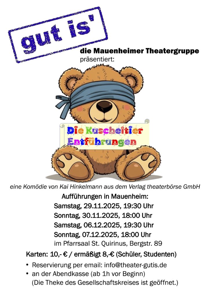 An vier Abenden präsentiert die Mauenheimer Theatergruppe gut is‘ eine Komödie von Kai Hinkelmann.